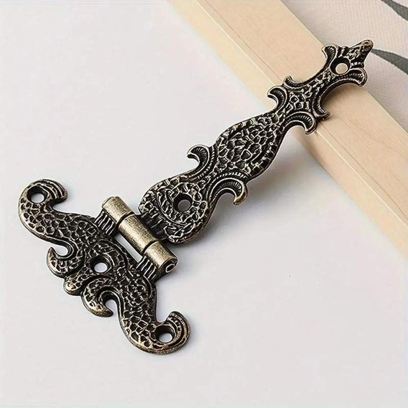 1pc Antique Bronze European-Style Box Clasp Hinge – Ornate Leaf Filigree & Floral Metal hinge for Wooden Box Enhancement, Durable Alloy Leaf Pattern Hardware for Antique Furniture Repair or Crafted Wood Boxes (Clasp Mechanism Included)