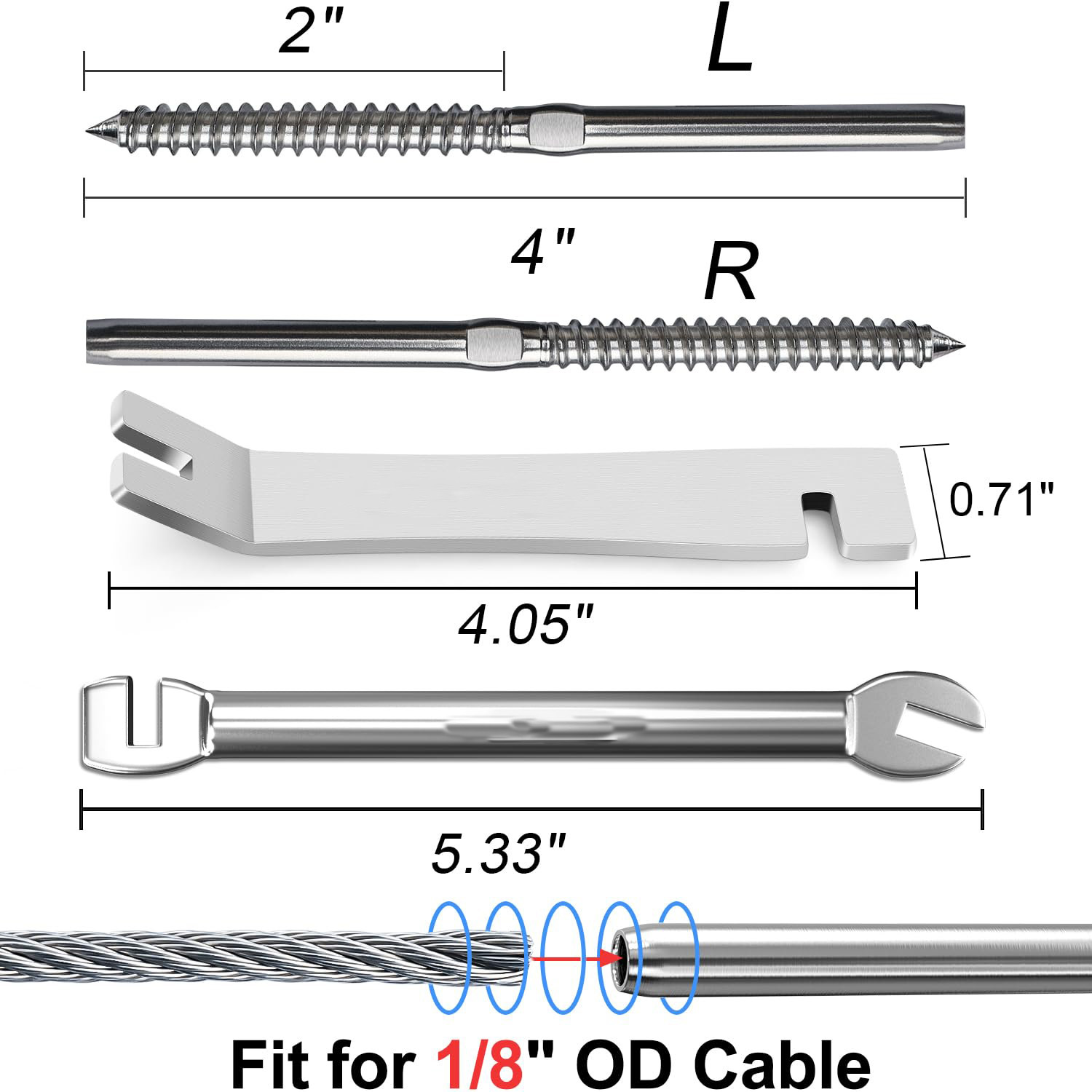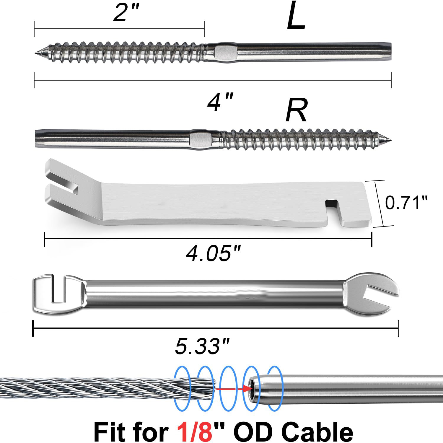 20 Packu002F70 Pack T316 Stainless Steel Right&Left Handed Thread Swage Lag Screws for Wood Post of 1u002F8