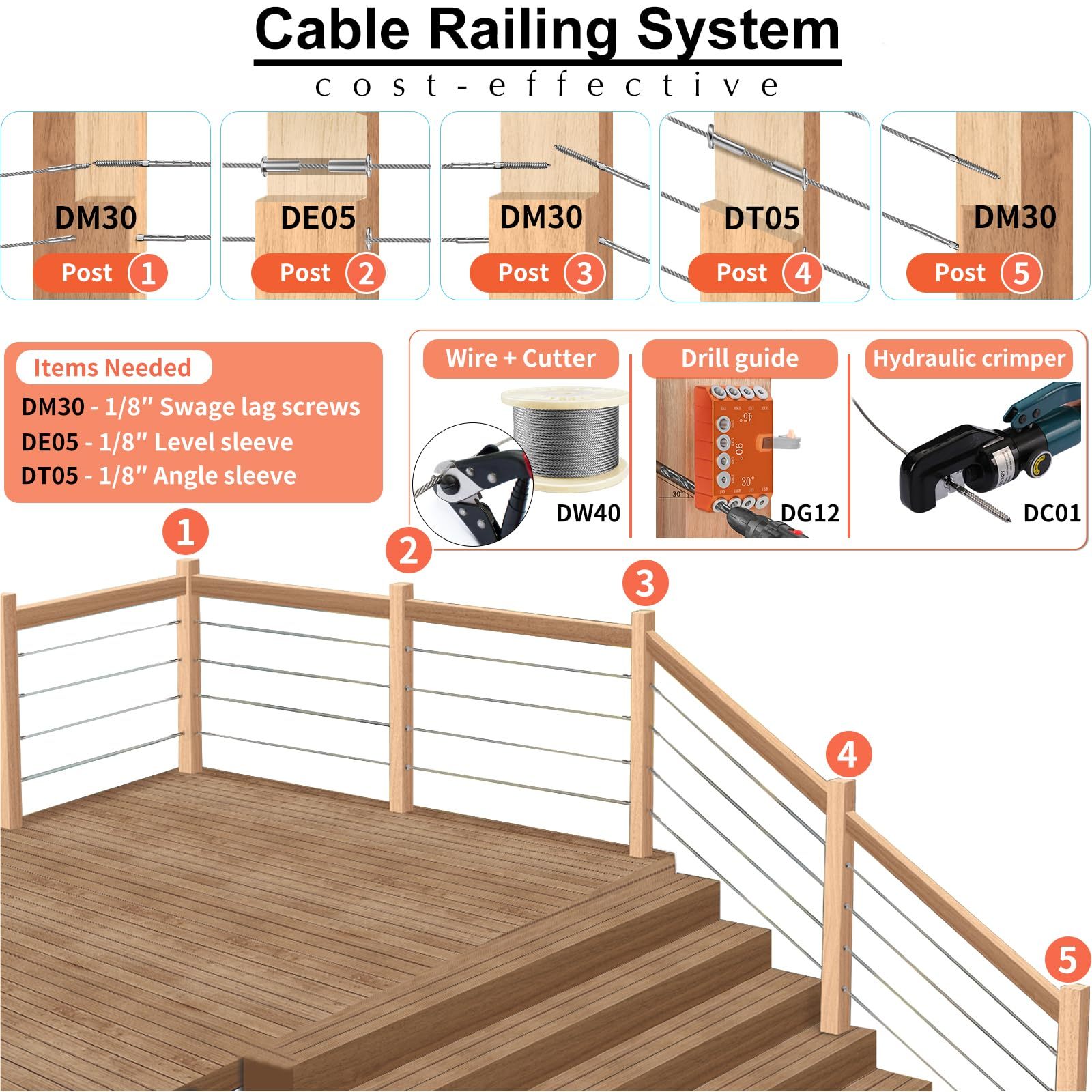 Home Main Materials for building 20 Packu002F70 Pack T316 Stainless Steel Right&Left Handed Thread Swage Lag Screws for Wood Post of 1u002F8