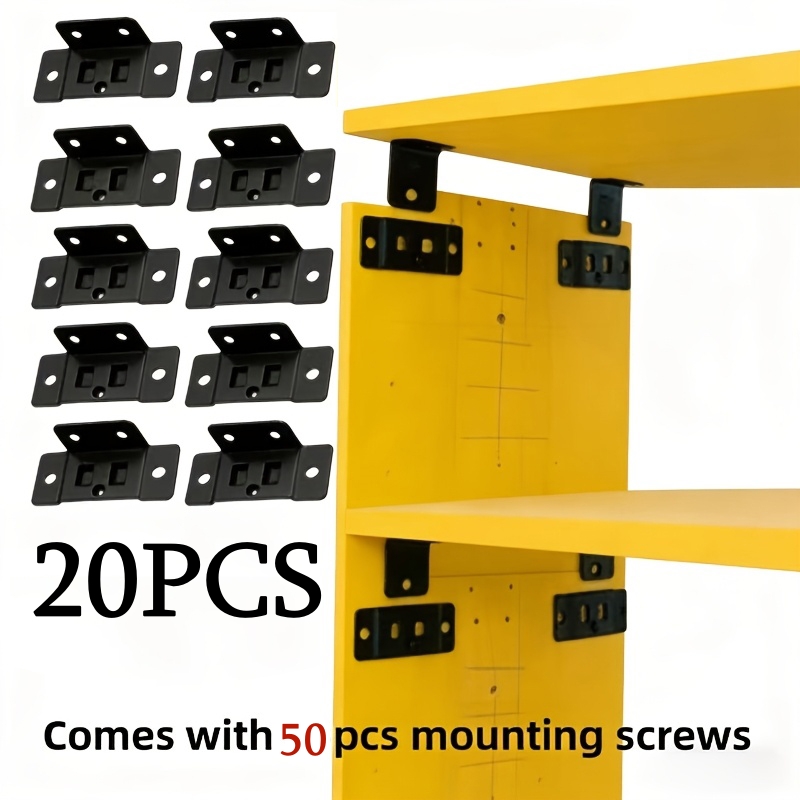 20pcs Set + 50pcs Installation Screws, Metal Fixed Clips with Dual Function, L-Shaped 90-Degree Connectors for Furniture Shelves, Thickened Brackets for Home Improvement Hardware, Easy to Install Without Complicated Tools