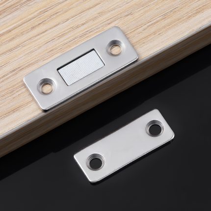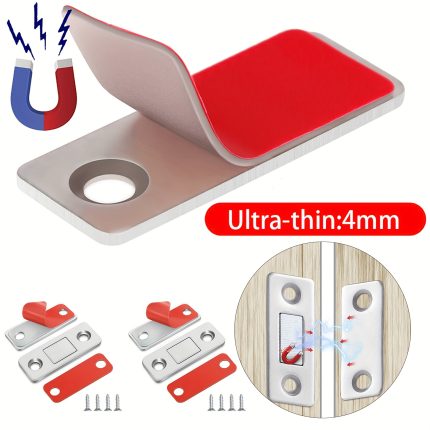 Ultra Thin Magnetic Cabinet Door Catch | Strong Magnetic Drawer and Kitchen Closet Door Closure, Satin Metal End