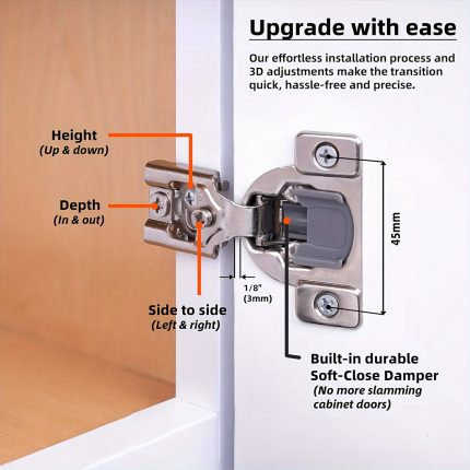 Soft-close Cabinet Hinges, Concealed Self-closing Face Frame Cabinet Hinges, Built-in Soft-close Hinge Damper 3-way Adjustment, For Kitchen Cabinet Doors, 1u002F2-inch, Brushed Nickel