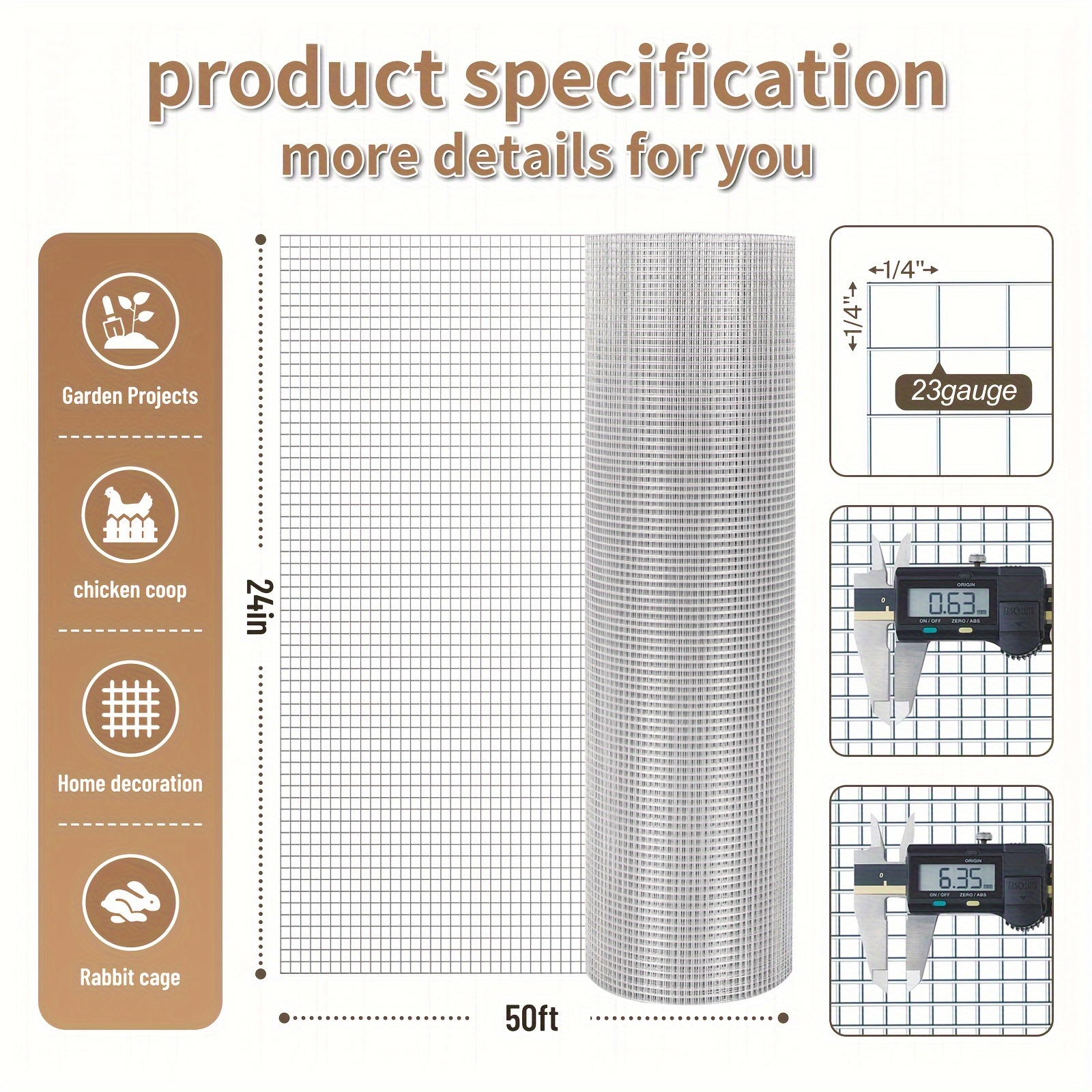 23 Gauge 1u002F4 Inch Galvanized Hardware Cloth – Double-Layer Hot-Dip Welded Wire Mesh Roll For Chicken Wire Fencing, Garden Fence, Rabbit Cage