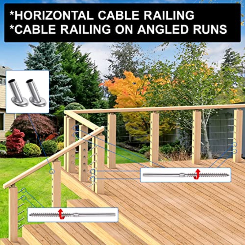 Home Main Materials for building BLIKA 120 Pack T316 Stainless Steel RightandLeft Handed Thread Swage Lag Screws for Wood Posts and 20Pcs Deck Railing Brackets Connectors