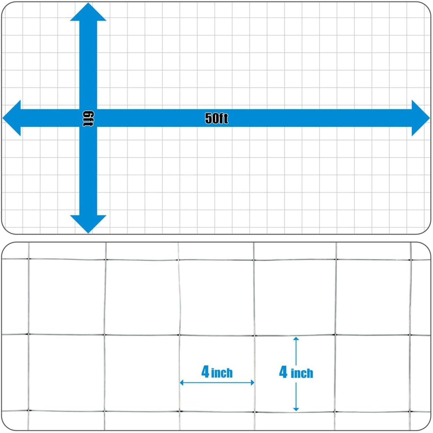 4” x 4″ Opening Square Mesh Weave; With 4 inch by 4 inch mesh. the welded wire is flexible and tight enough to leave out large ground crawling arachnids