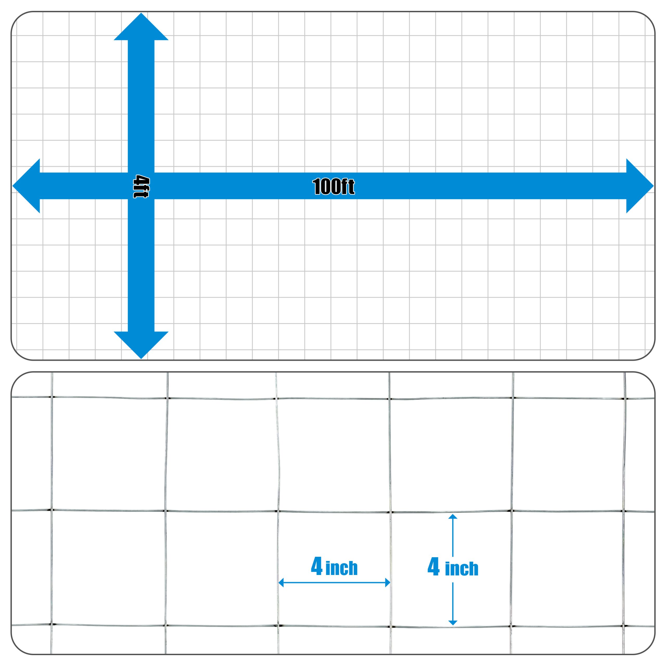 CAPHAUS 12.5 Gauge Galvanized Welded Fence Wire Roll, with 4?? x 4?? Square Mesh Opening, Wire Mesh Fencing Roll for Vegetables Garden Netting Chicken Coop Animal Enclosure