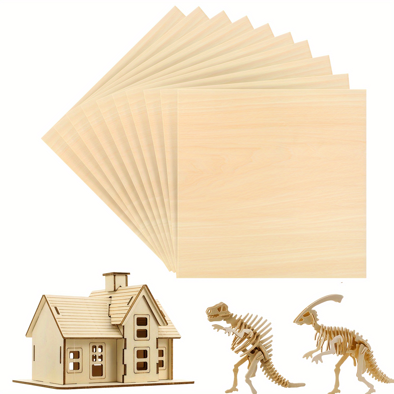 Dofiki 15pcs 3mm Basswood Plywood 12 X 12 X 1u002F8 Inches (305x305x3mm) for Home Decoration, Laser Engraving, Crafts, Architectural Model Making, Painting, DIY