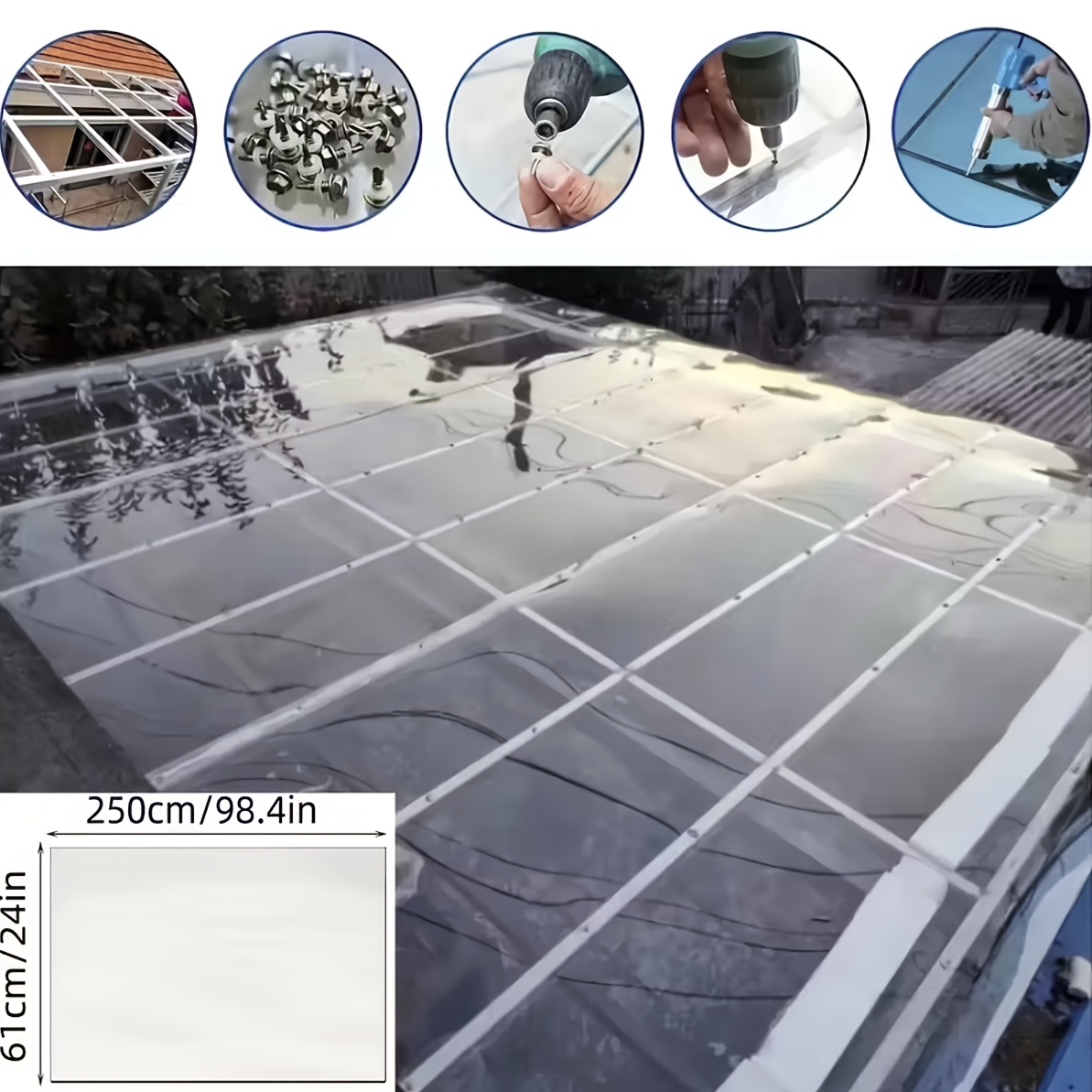 Durable Polycarbonate Roof Panel- 24in X 98.4in, UV Resistant Outdoor Garden Awning for Greenhouses, Sheds And Terraces| Water And Leak Proof, High Transparency| Easy to Install And Trim