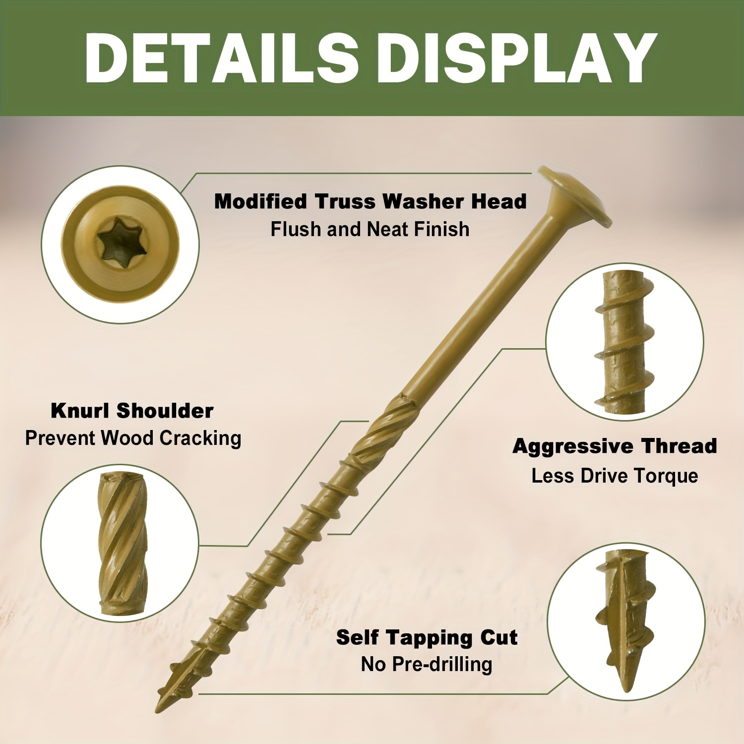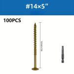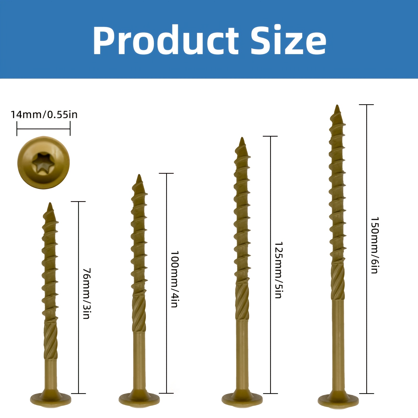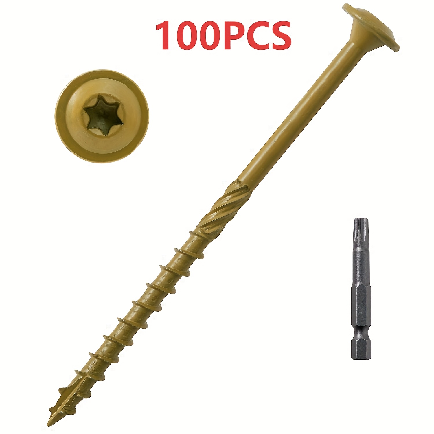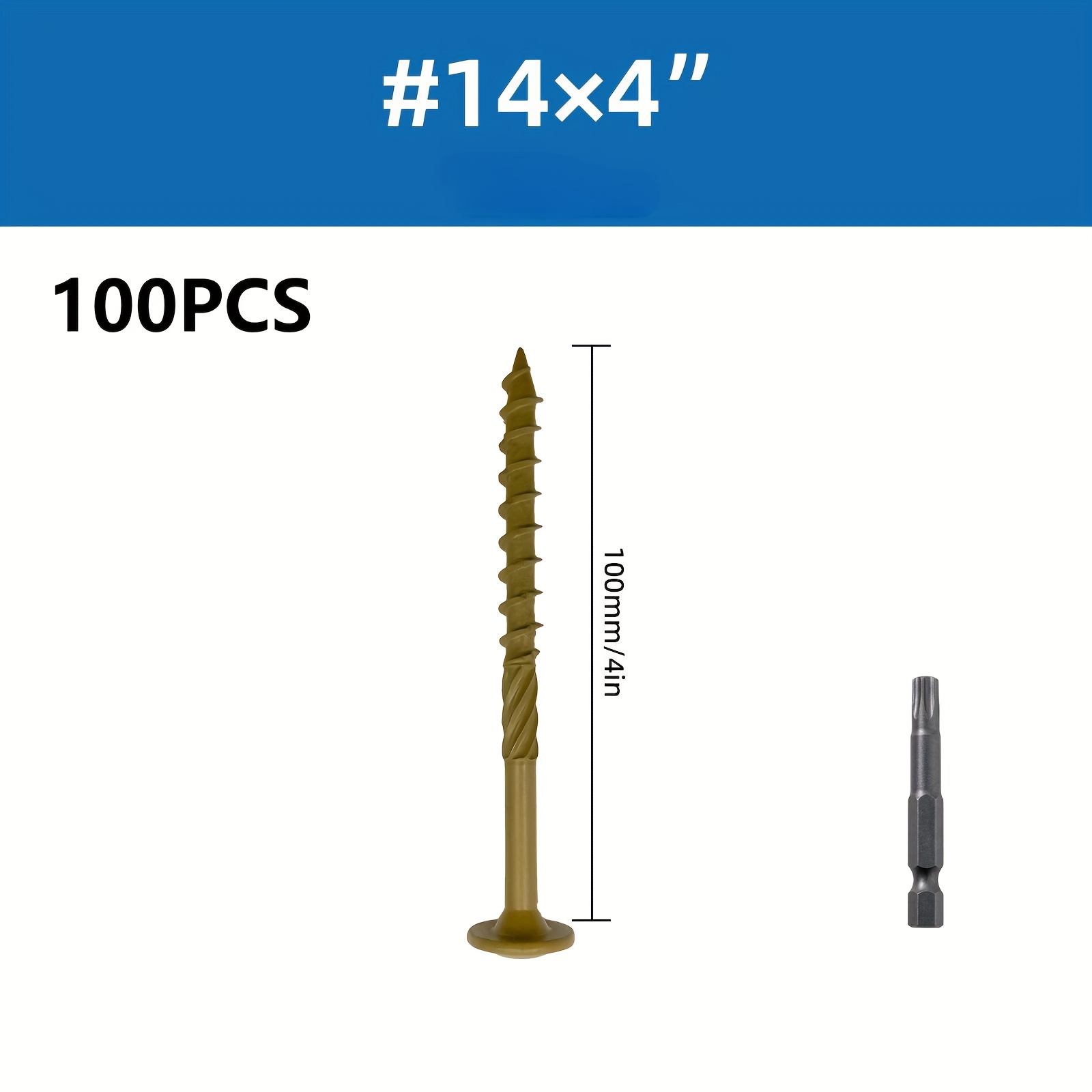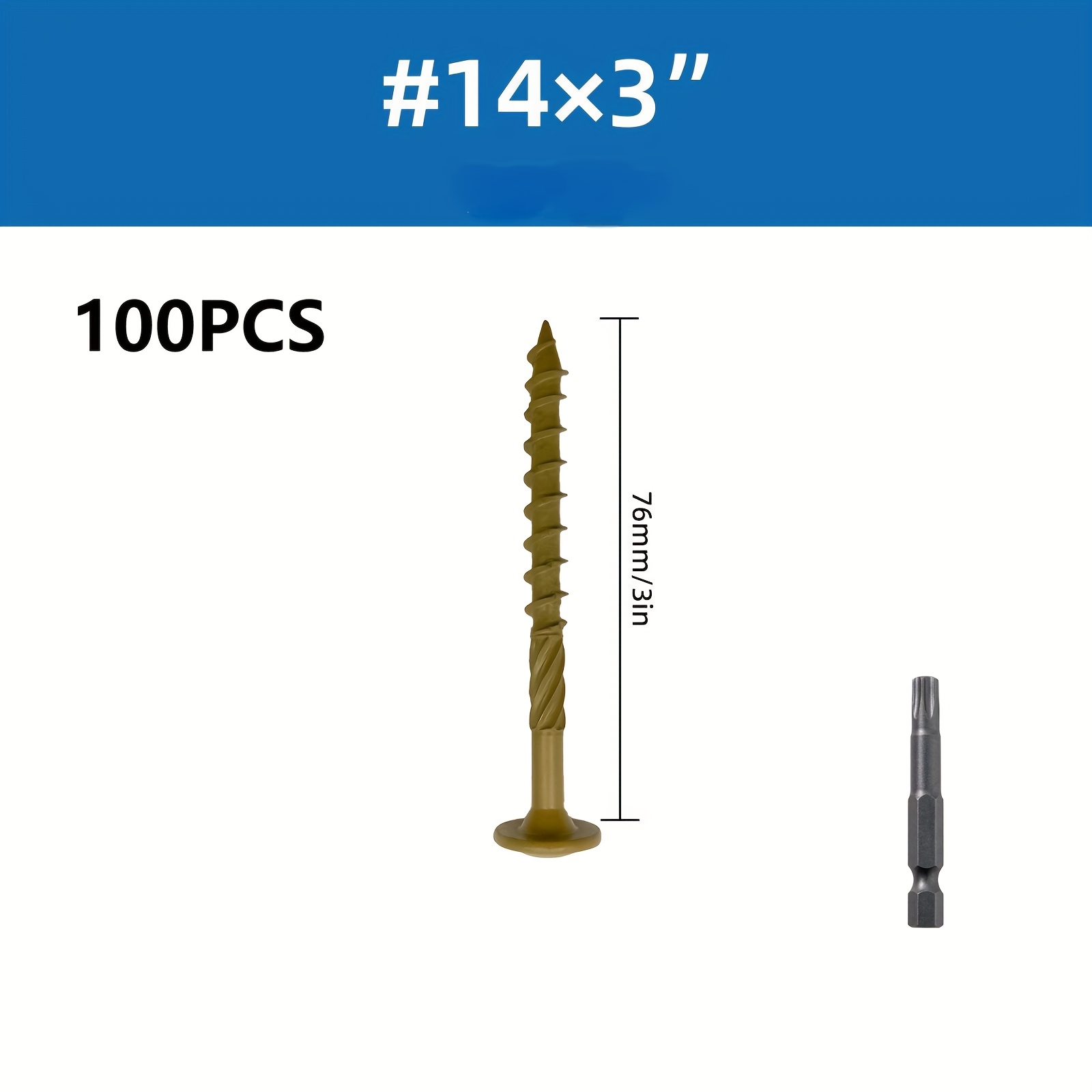 Heavy Structural Screws 100pcs Heavy Structural Screws | #14 External, Rust Proof, Washer Head, Bronze Plated, Star Drive With Drill Bit, Building Wood Screws