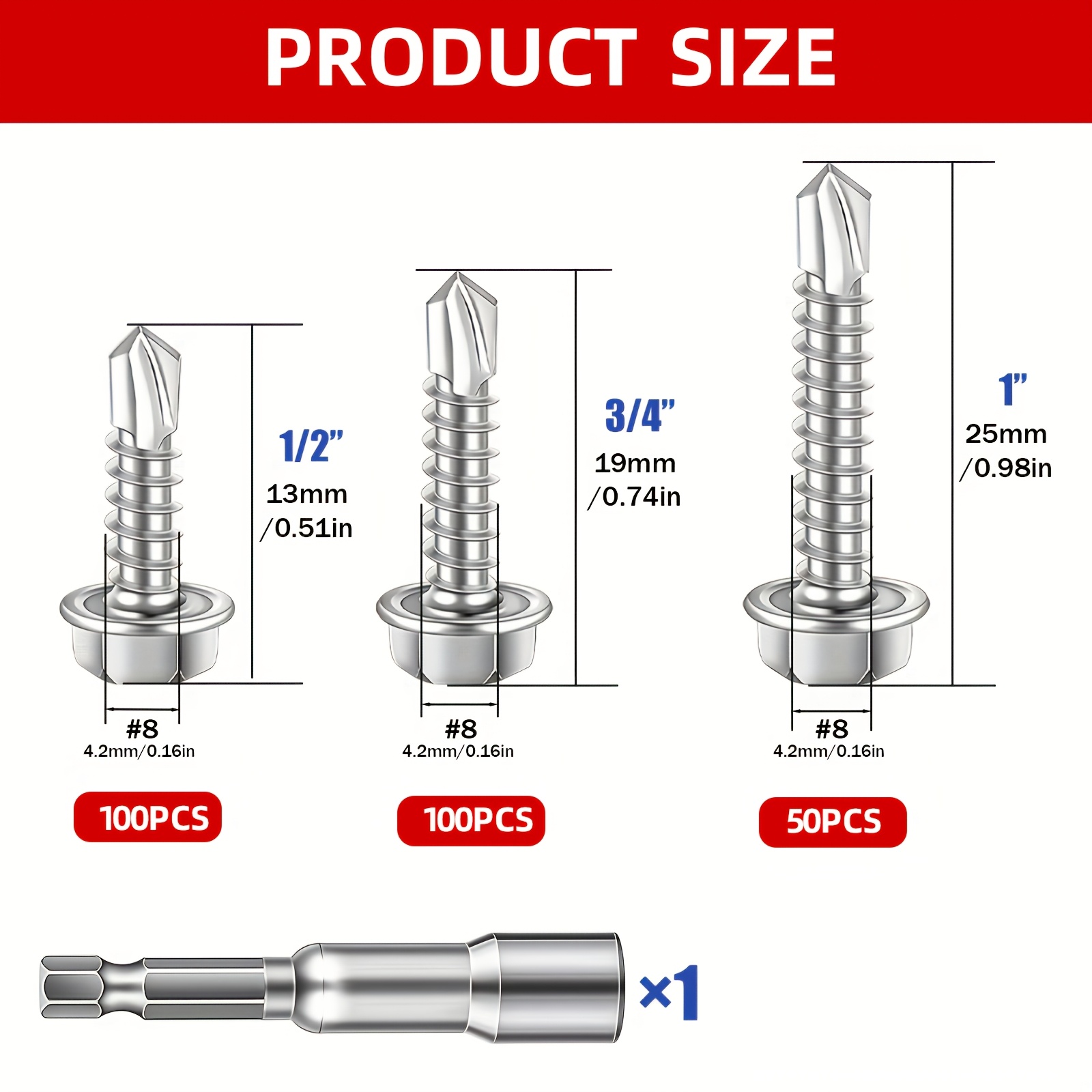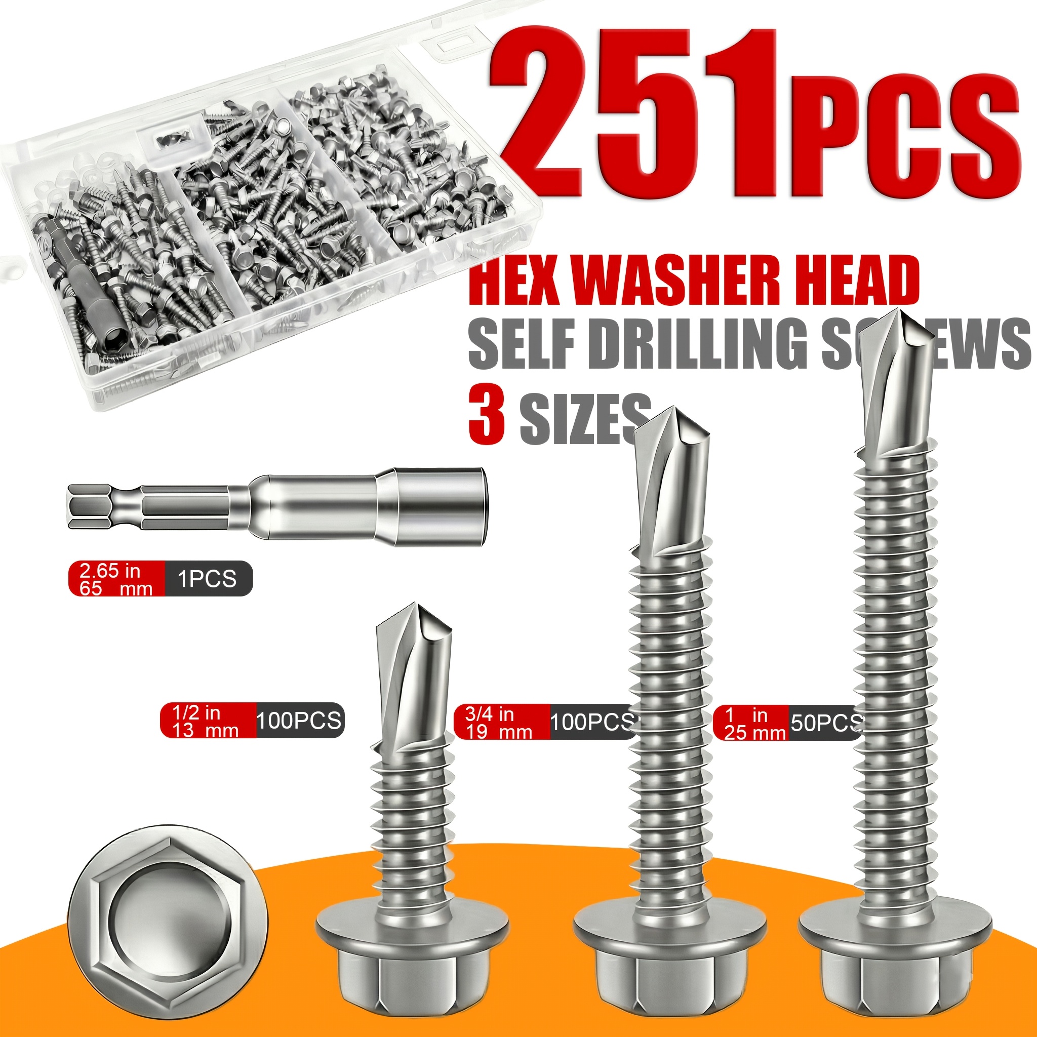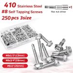 Hex Self-Drilling Screws 251pcs #8 Self-Tapping TEK Screw Assortment Kit, #8 (4.2mm) Hex Self-Drilling Screws for Metalu002FFurniture, Construction And Repair, 3 Sizes (1u002F2