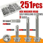 Home Main Materials for building Hex Self-Drilling Screws 251pcs #8 Self-Tapping TEK Screw Assortment Kit, #8 (4.2mm) Hex Self-Drilling Screws for Metalu002FFurniture, Construction And Repair, 3 Sizes (1u002F2