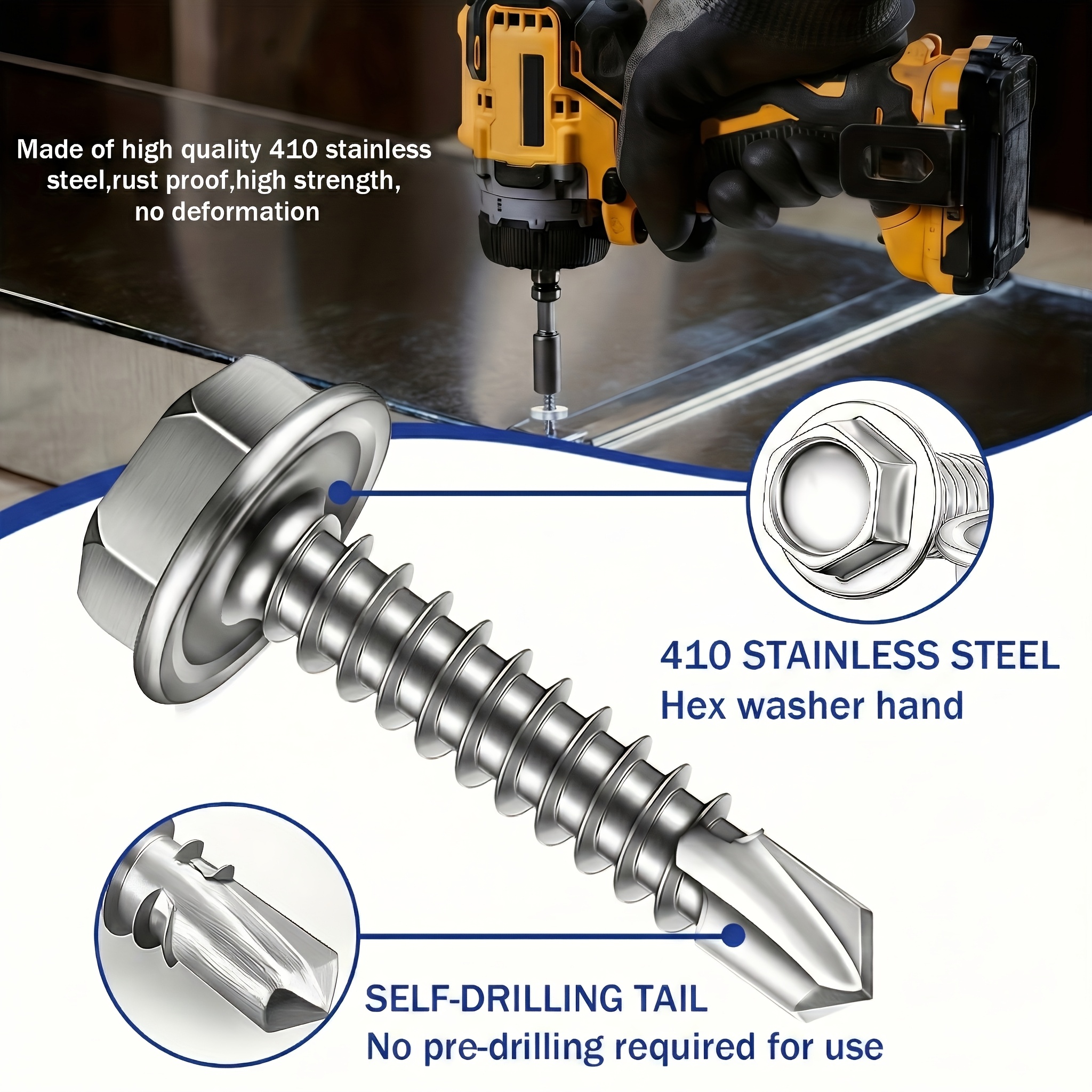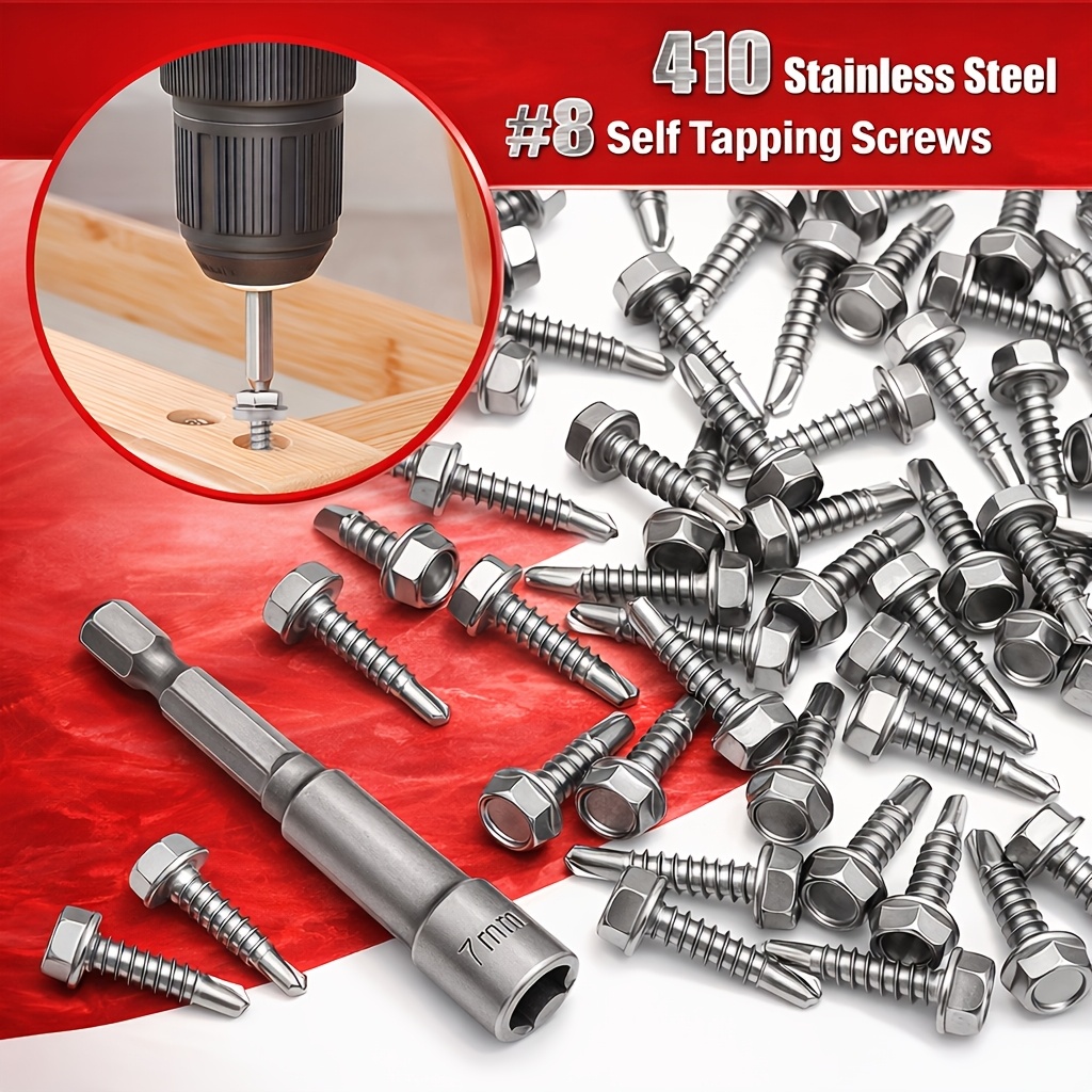 470pcs Tgbox Self Drilling Screws | 410 Stainless Steel Self Tapping Screws #8#10 For Metal-2 Type Head (Hexu002FRound) 1u002F2