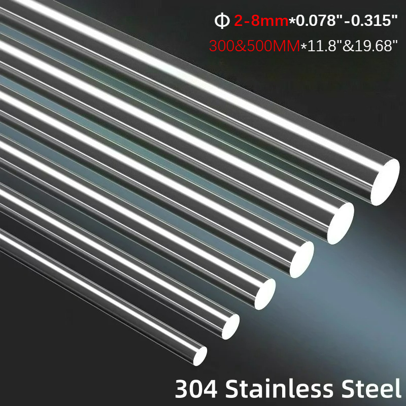 Premium 5-Pack 304 Stainless Steel Rods, Multi-Size Choice (2-8mm), 12