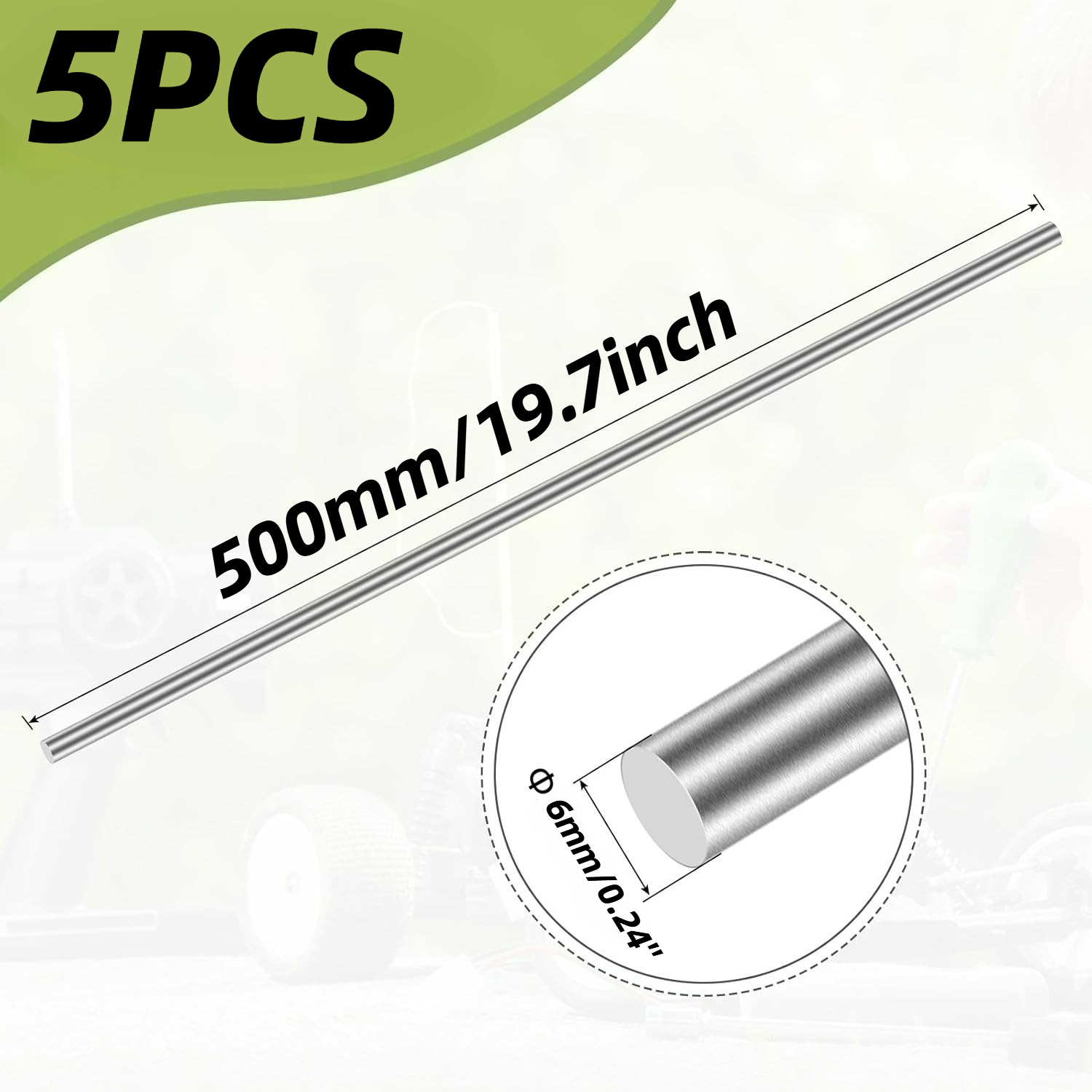 Premium 5-Pack 304 Stainless Steel Rods, Multi-Size Choice (2-8mm), 12