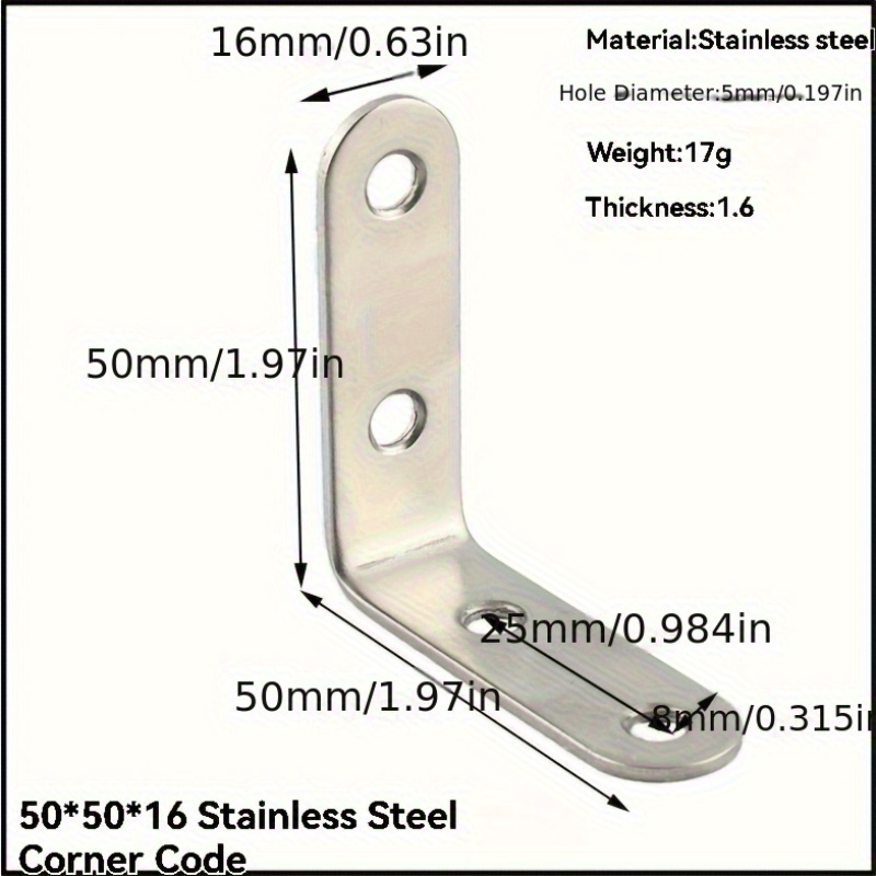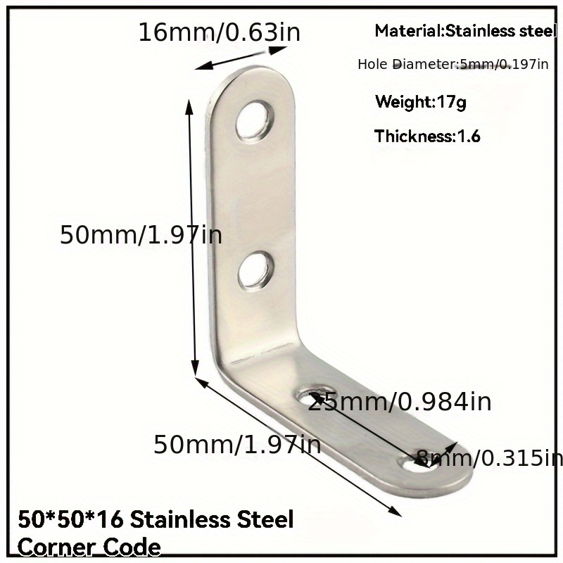Home Indoor Hardware Fitting Set of 50 Robust Corner Brackets – Rust-Resistant 90?? Right-Angle Connectors for Furniture – Sturdy Stainless Steel Offset Brackets for Secure Fastening – Versatile Corner Code Kit