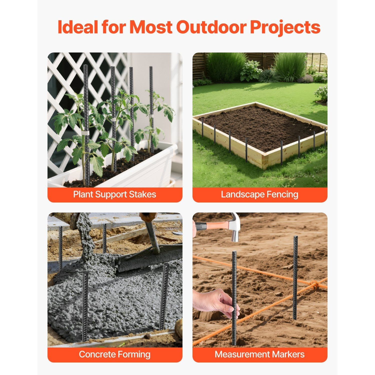 Versatile Applications: Ideal for anchoring fences. tents. trampolines. yard decorations. soccer goals. swings. etc. Our rebar stakes perform well on sand. soil. and hard ground for a variety of outdoor occasions