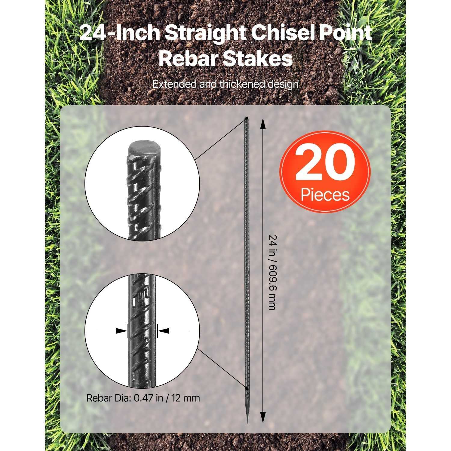 VEVOR 16-Inch u002F 24-inch 16 Pack u002F 20 Pack Rebar Stakes Heavy Duty Straight Galvanized Steel Ground Anchors