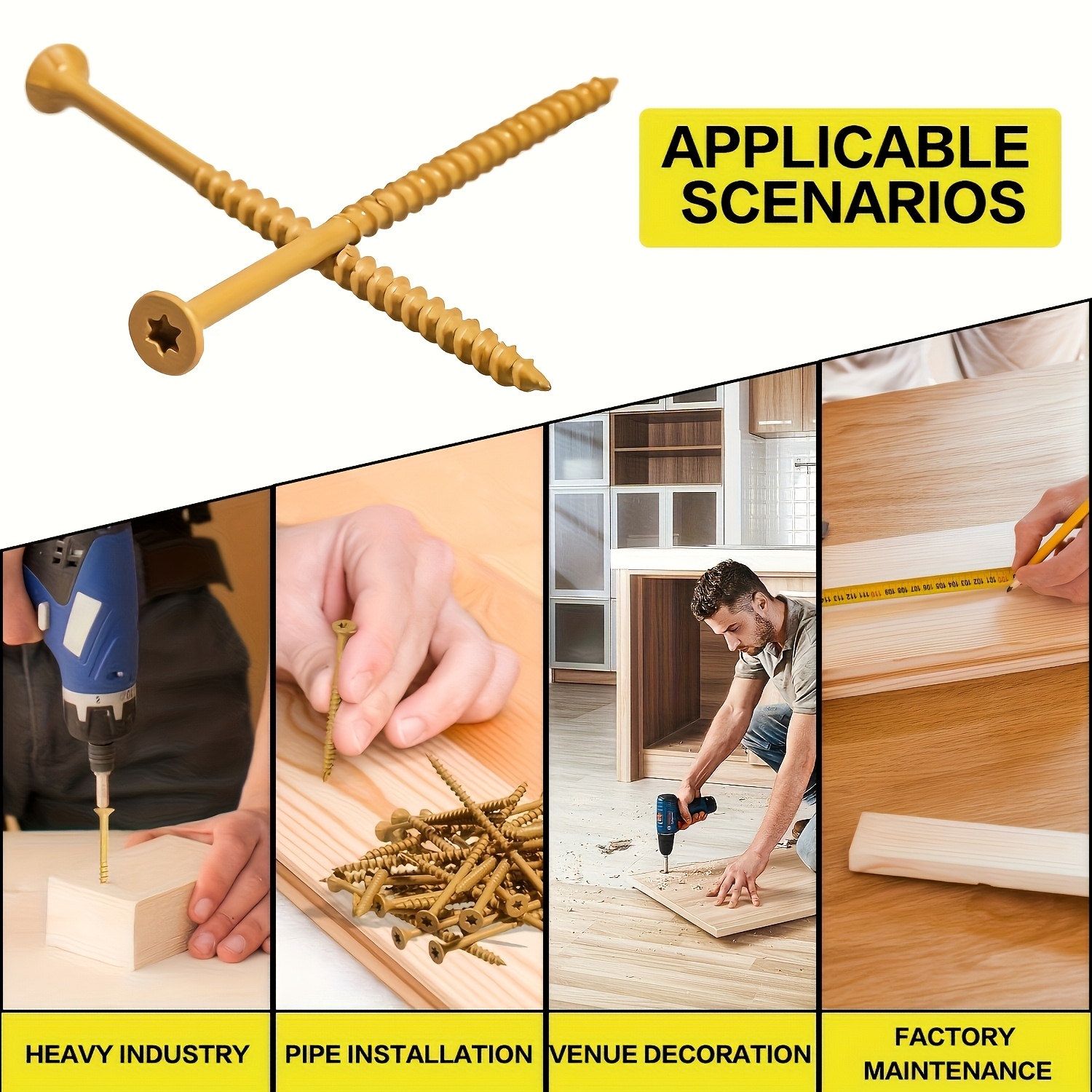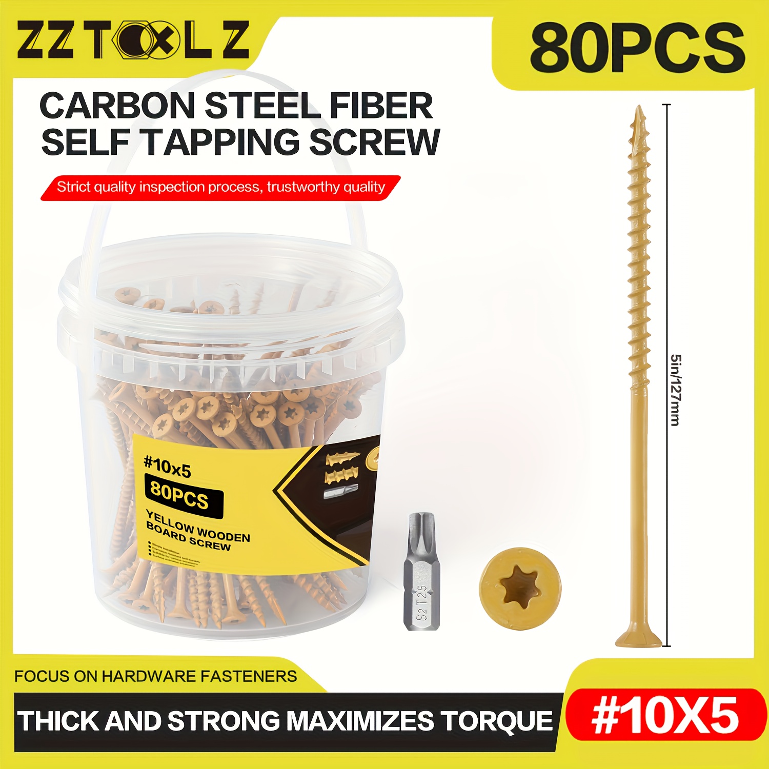 14??3 Inch, 4 Inch, 5 Inch, 6 Inch External Screws, Heavy-Duty Wood Screws with Anti-Rust Epoxy Coating, Carbon Steel Truss Heads, Driven by T30 Star Drill Bits, Suitable for Wood, Construction Wood Screws