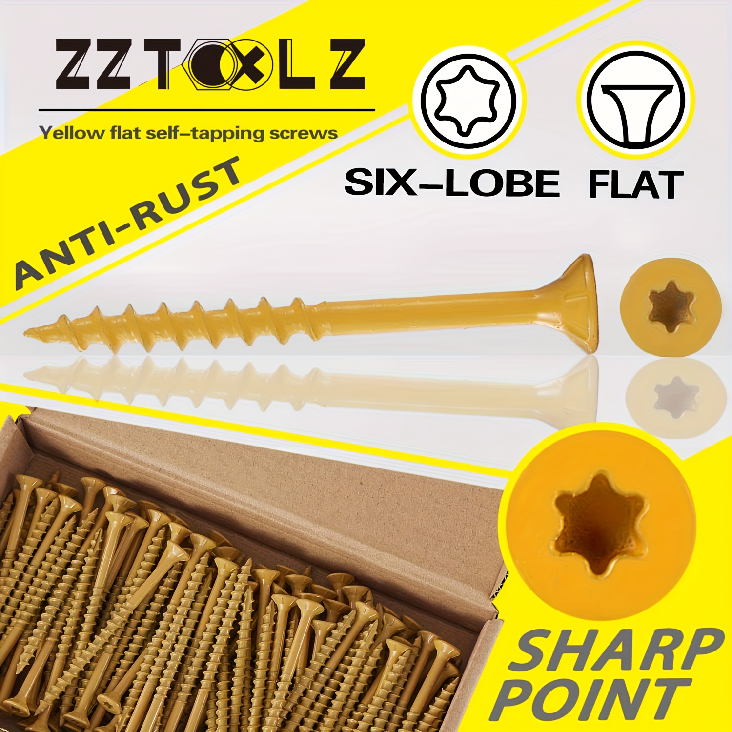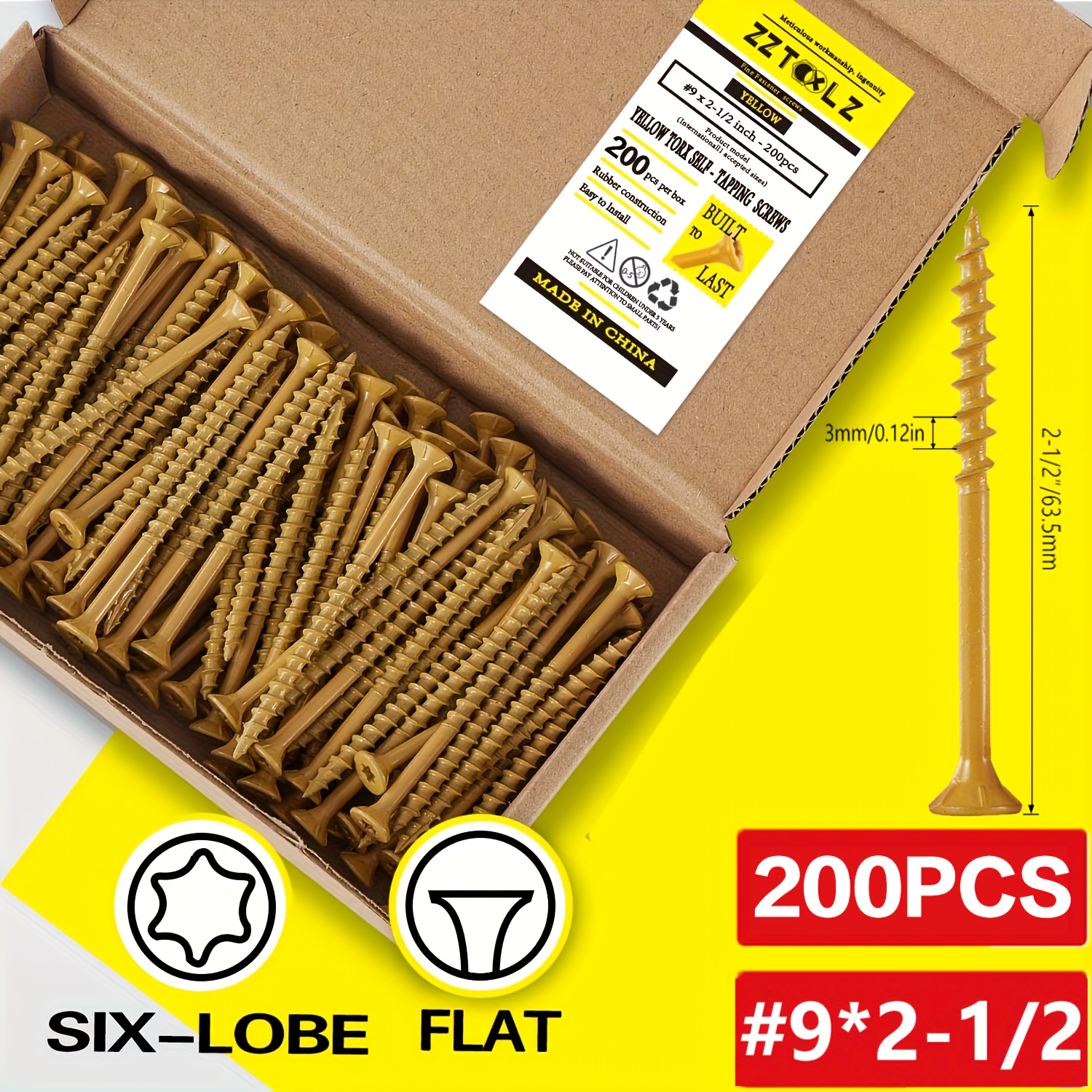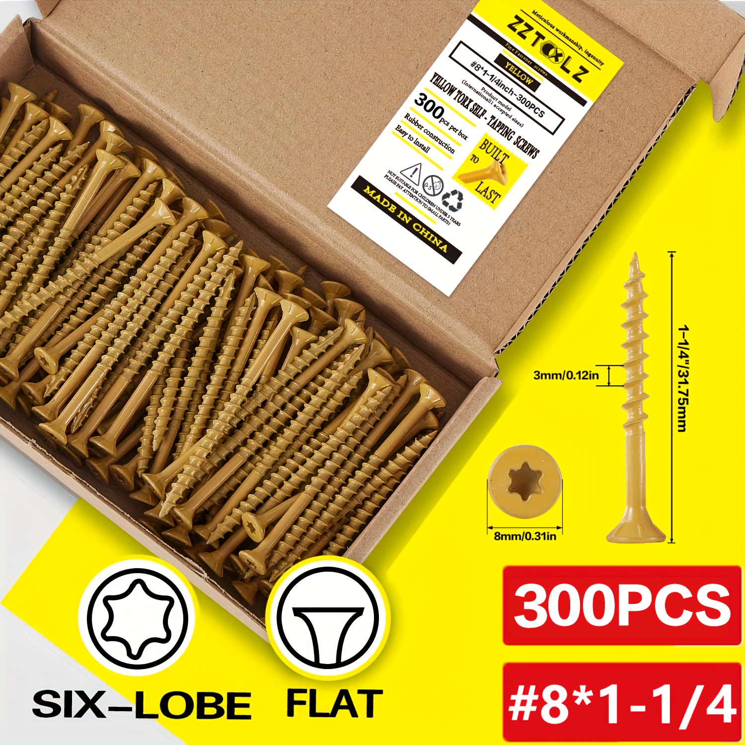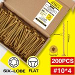 14??3 Inch, 4 Inch, 5 Inch, 6 Inch External Screws, Heavy-Duty Wood Screws with Anti-Rust Epoxy Coating, Carbon Steel Truss Heads, Driven by T30 Star Drill Bits, Suitable for Wood, Construction Wood Screws
